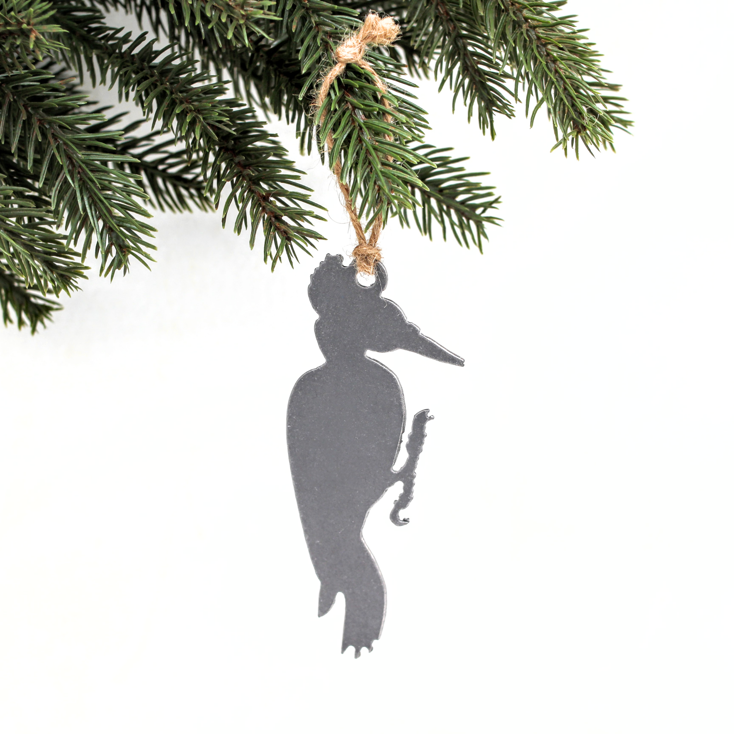 This ornament is crafted from recycled steel and may have unique markings or patina, adding to its one-of-a-kind design. Our products are produced in small batches in our shop and materials may vary slightly from one piece to another. (Nothing is mass produced or outsourced.)
